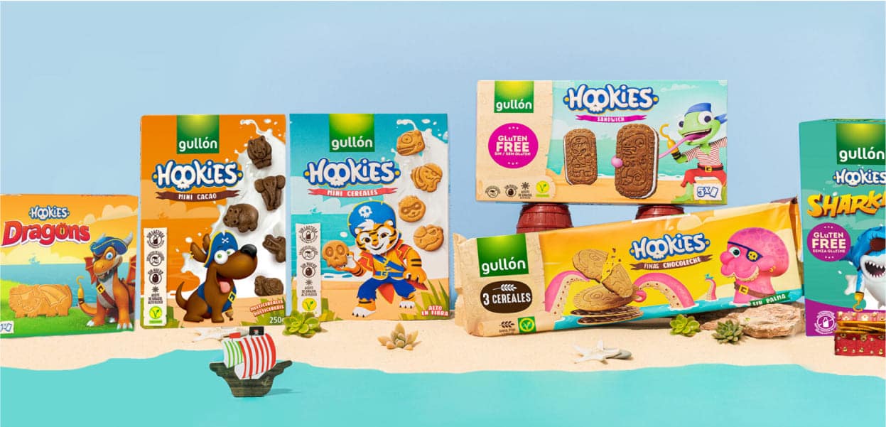 A diversão está garantida com as Hookies Dragons, as Magic cobertas com Chocolate, as Hookies Mini Cacao ou os Sharkies Sem Glúten. Bolachas divertidas de dragões, deliciosos cachorrinhos de chocolate, mini tubarões ou as suas bolachas favoritas cobertas com chocolate de leite, que despertarão a sua imaginação e garantirão momentos de diversão com os amigos.