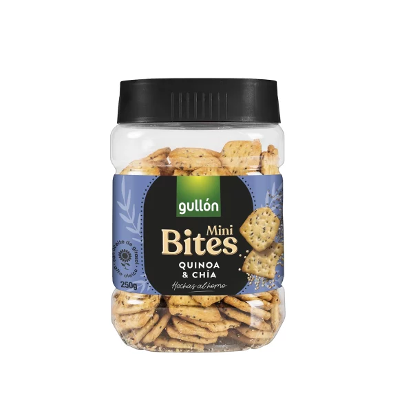 Descobre as bolachas Mini Bites Quinoa e Chia! As bolachas salgadas e crocantes mais inovadoras. Um snack perfeito para comer sem mais nada ou acompanhar o teu aperitivo favorito. Além disso, são feitas com óleo de girassol alto oleico.