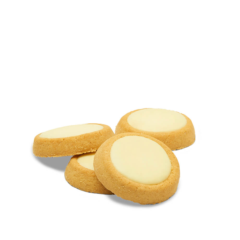 Ingredientes: Farinha de trigo, chocolate branco (açúcar, manteiga de cacau, leite em pó, emulsionante (lecitina de girassol)), crema (açúcar, óleo vegetal (girassol), leite inteiro em pó, gordura vegetal (coco e karité), soro de leite em pó, manteiga concentrada (leite), emulsionante (lecitina de soja), aroma], óleo vegetal (girassol alto oleico), açúcar, soro de leite em pó, amido de trigo, leite em pó desnatado, fibra vegetal, agente levedante (hidrogenocarbonato de potássio), sal, emulsionante (lecitina de soja), aroma. Pode conter vestígios de frutos de frutos secos.