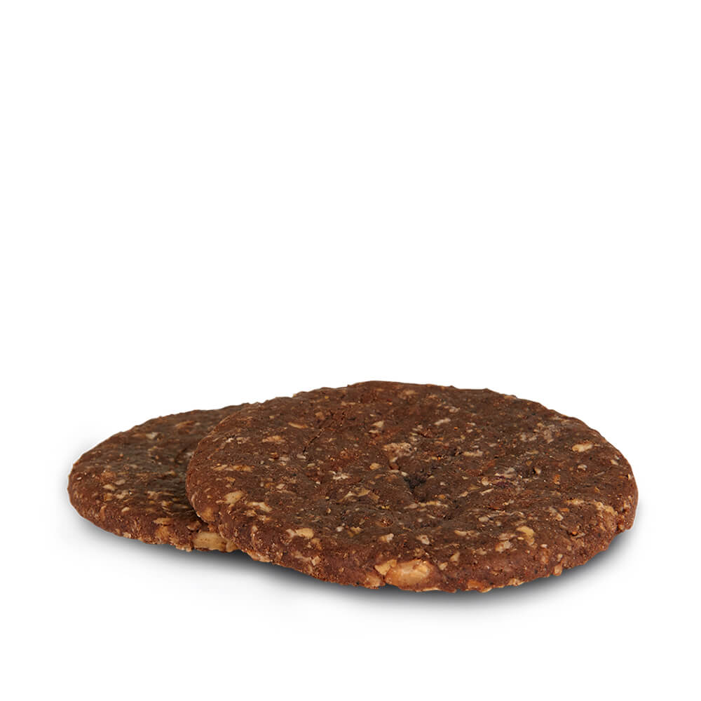 Ingredientes: Cereais  (flocos de aveia, farinha de trigo, flocos de centeio integral, farinha integral de trigo), óleo vegetal (girassol de alto teor oleico), açúcar, pedaços de chocolate (açúcar, pasta de cacau, manteiga de cacau, emulsionante (lecitina de soja)), arando em pó , fibra vegetal, cacau em pó, preparado de arandos (açúcar, xarope de glicose, arandos, espessante (alginato sódico)), levedantes (hidrogenocarbonato de sodio, difosfato dissódico, hidrogenocarbonato de amónio), sal, aroma natural, emulsionante (lecitina de soja). Pode conter vestígios de leite.