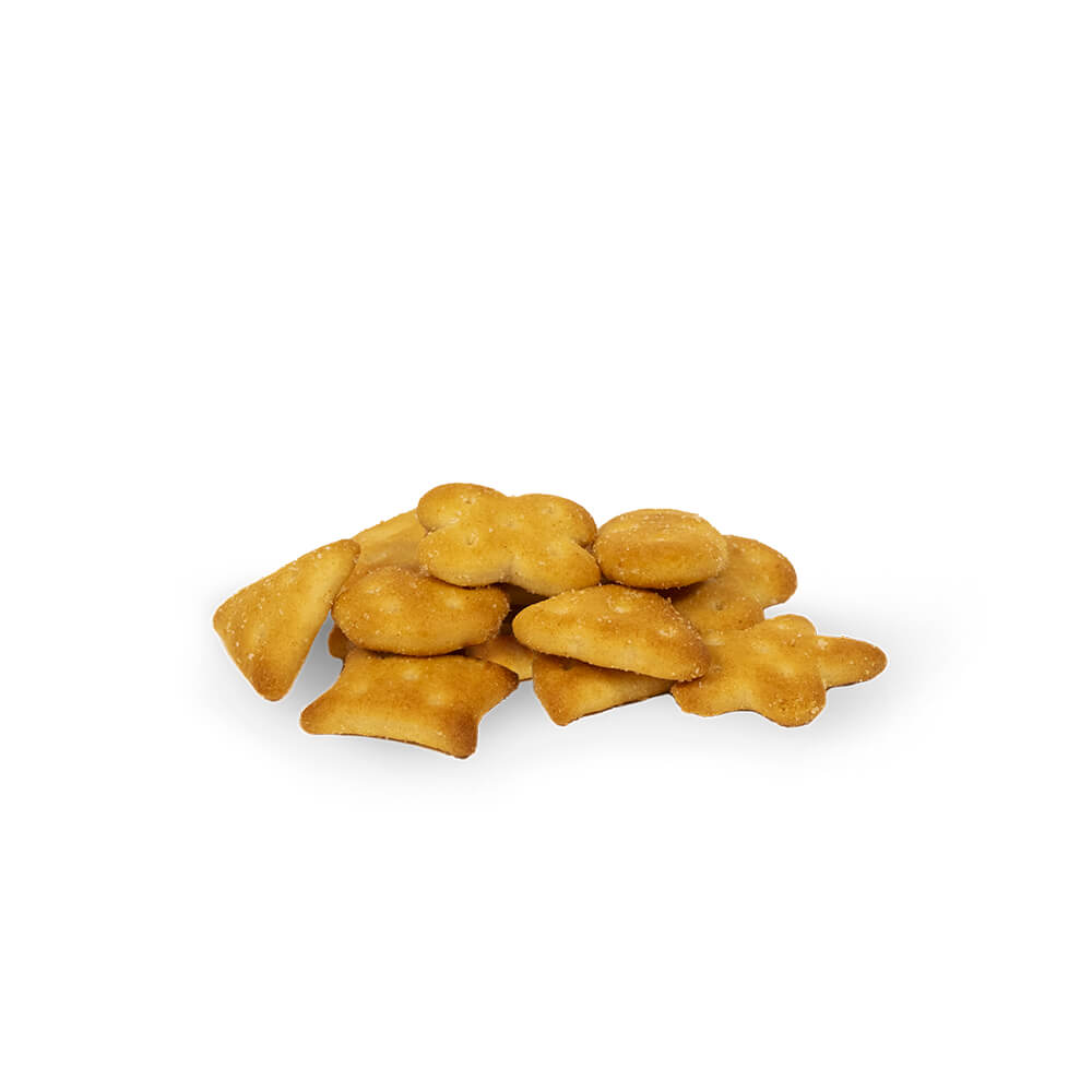 Farinha detrigo, óleo vegetal (girassol alto oleico), xarope de glicose e frutose, aroma sabor de presunto 5% (intensificadores de sabor (glutamato monossódico, inosinato dissódico, guanilato dissódico, aroma, aroma de fumaça), açúcar, azeite de oliva, xarope de malte (cevada), levedantes (fosfato monocálcico, hidrogenocarbonato de sódio, hidrogenocarbonato de amónio), sal, antioxidante (metabissulfito de sódio). Pode conter vestígios de leite e soja.